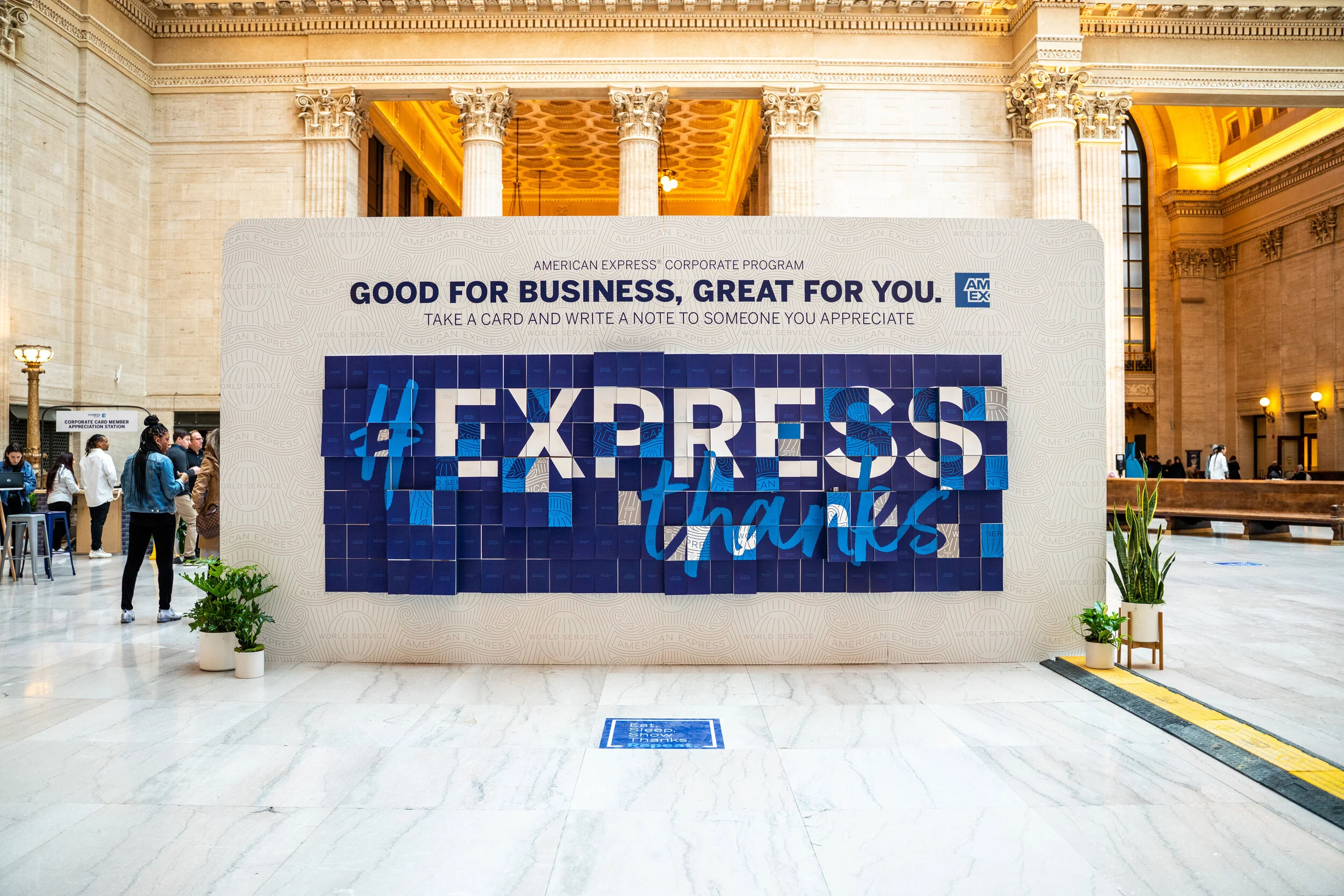 On the backside of the Cafe was a display comprised of layers of postcards that work together to create an #ExpressThanks design. Throughout the day, guests took postcards off of the wall, each containing a message of appreciation that they were then able to personalize and give to a coworker they appreciate.